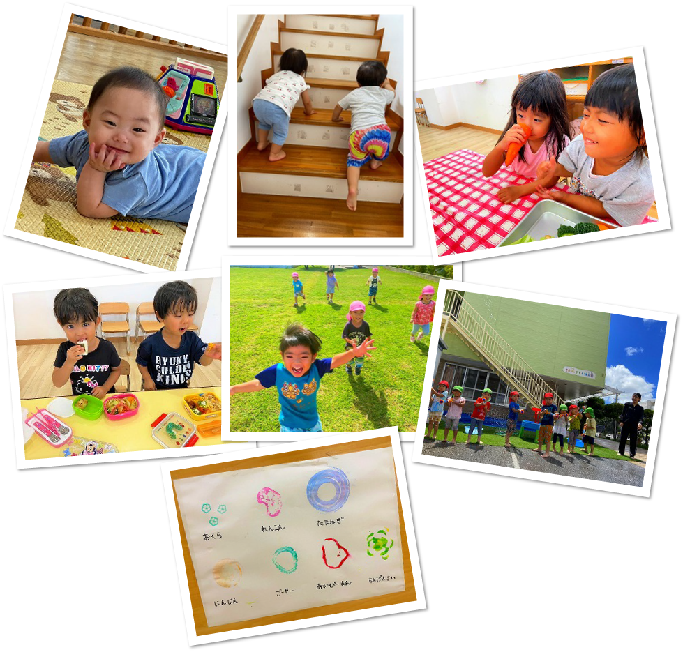 本園周囲にはたくさんの公園があり、出かける機会を多く持ちます。土・草・水の感触を体 中で感じ、遊具で遊んだり、虫と遊んだりします。